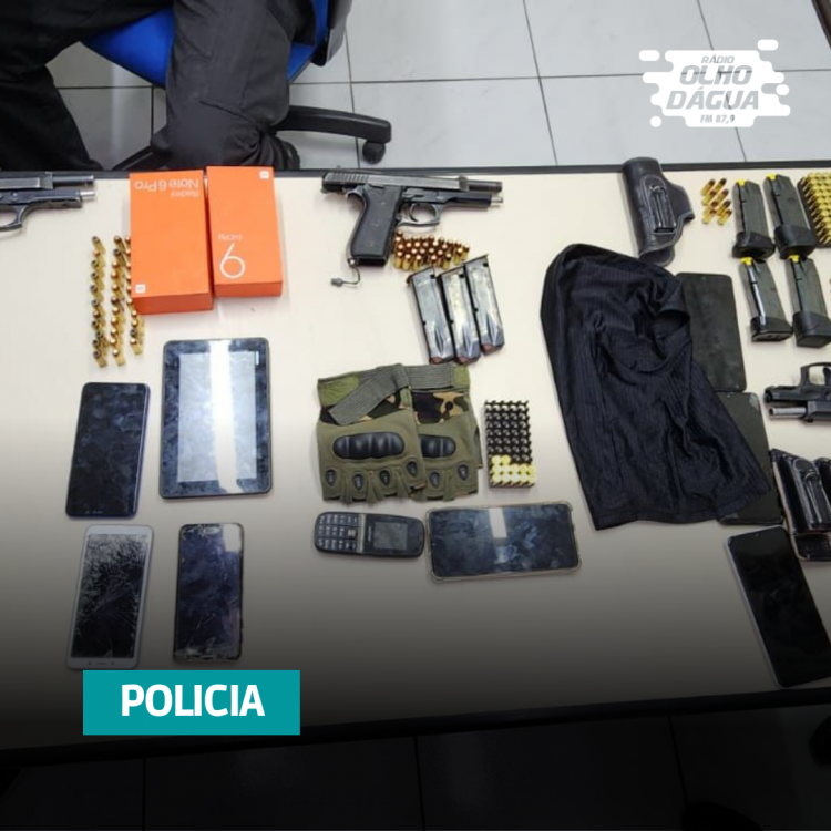 quatro pistolas de calibre nove mm e .40, várias munições desses calibres e uma
