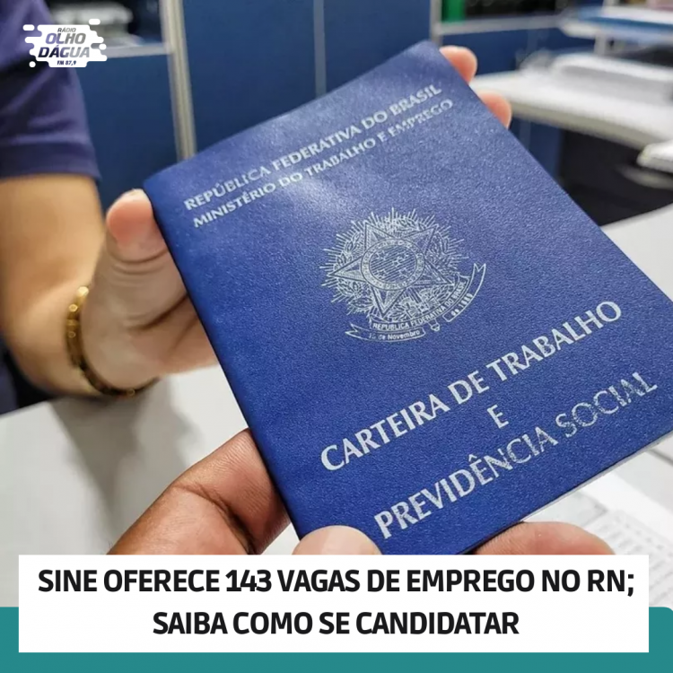 SINE OFERECE 143 VAGAS DE EMPREGO NO RN; SAIBA COMO SE CANDIDATAR